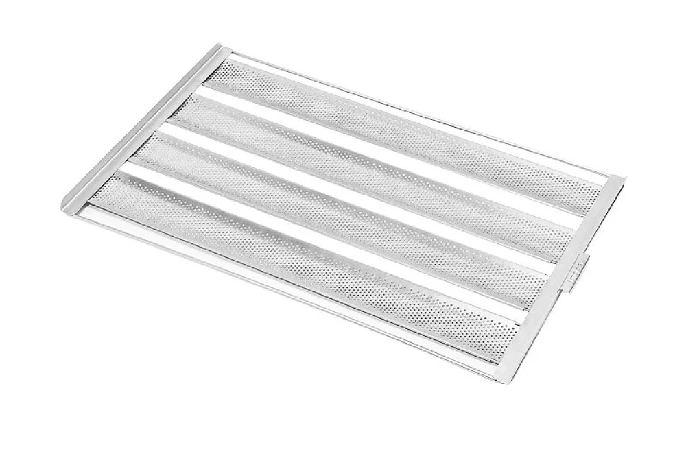Esteira 62x36 para pão francês 4 tiras 7 cm Melhor opção para a produção de pão de sal (francês), perfurada aumentando para maior absorção do calor. Super resistente, é de fácil manuseio e limpeza Características do produto: Tiras em Alumínio Perfuradas